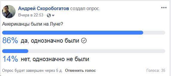 На ВК (там было можно добавлять и третий вариант, и до конца непонятно, какой процент реально верит про Плоскую землю, а какой прикололся или тыкнул в него как вариант "посмотреть ответы")