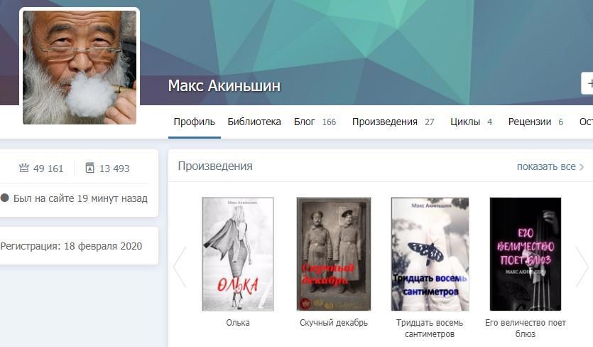 Сегодня я хотел вам рассказать о замечательном писателе Максе Акиньшине. https://author.today/u/maxohara1