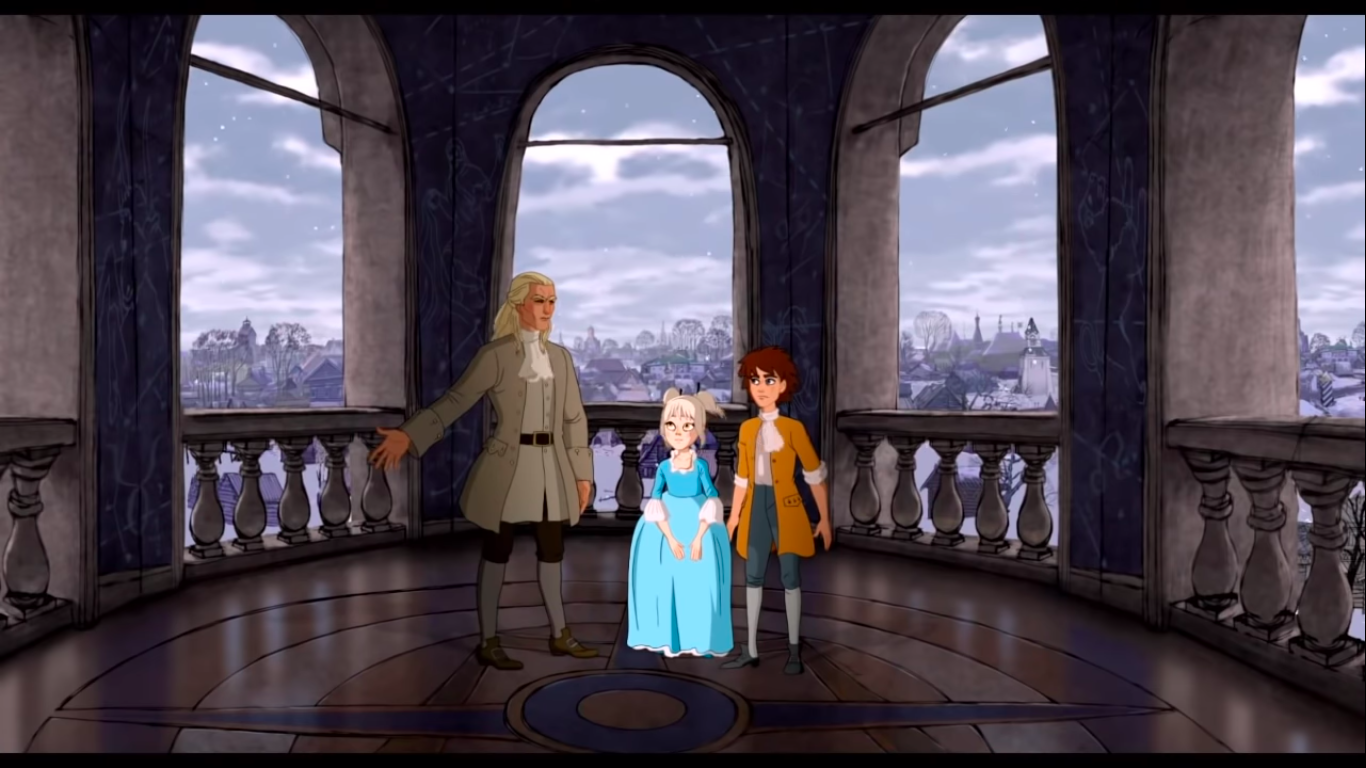 Девочка Маргарита и мальчик Пётр, дочь и подмастерье Якова Брюса, путешествуют по волшебным мирам с помощью волшебного браслета (типа змейки Мерлина в "Хрониках Амбера") и выполняют там разные квесты. Узнать, что он не её старший брат — можно очень не сразу. То, что навигаторская школа, которую Петька посещает, располагается в той же башне, ниже личных покоев Якова Брюса — я узнала только из Википедии, из статьи про саму реальную Сухареву Башню. Навигаторская школа показывается только в полнометражке и мимокродильно. Декорации и второстепеннные персонажи меняются молниеносно, не успеваешь как следует насладиться, поэтому я нафоткала папку на 500 скриншотов для творческих медитаций.