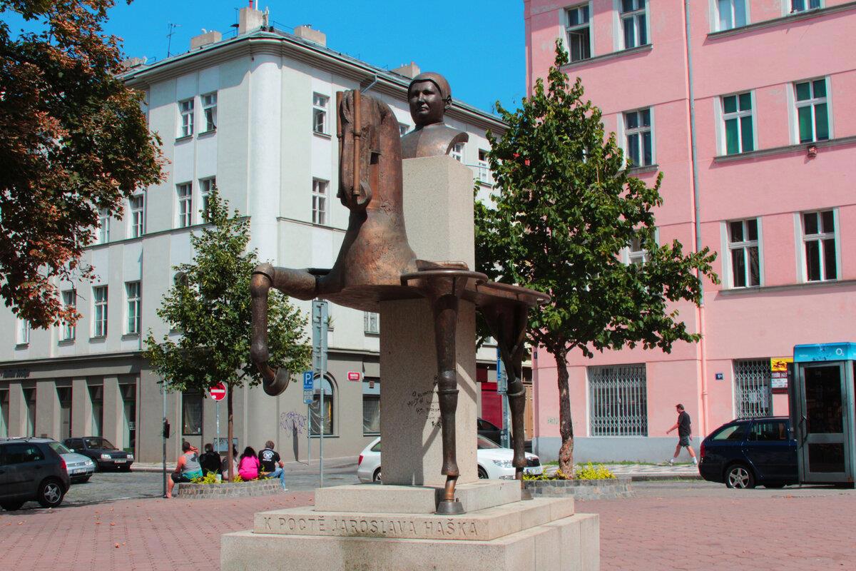 Памятник Ярославу Гашеку в Праге. Авторы — Карел Непраш и Каролина Непрашова-Крачкова.