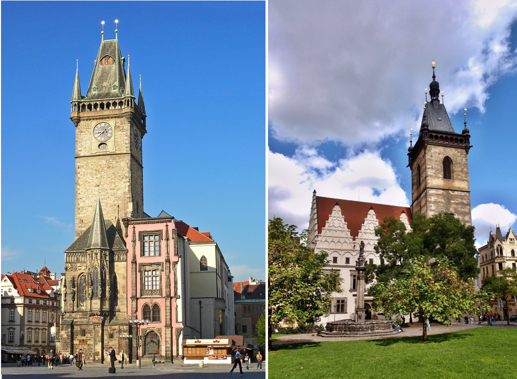 Старая (Староместская) и Новая (Новоместская) ратуши в Праге.