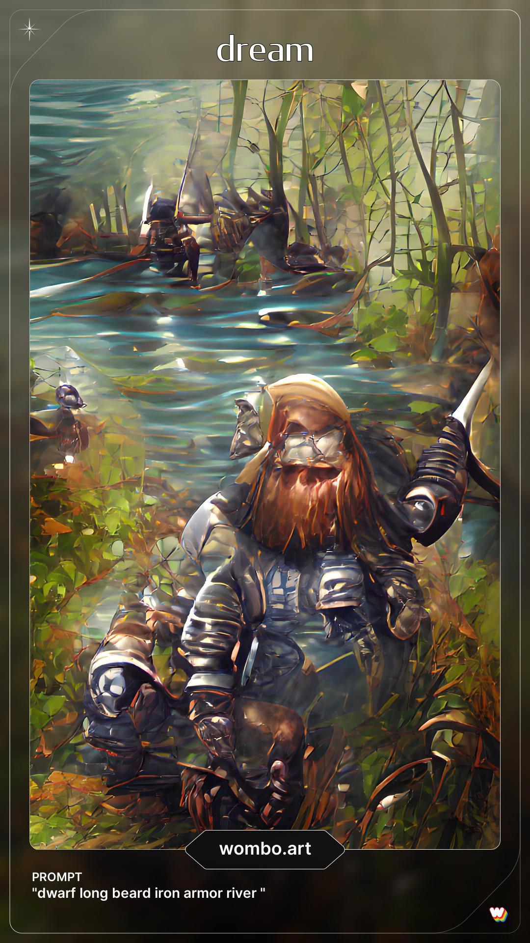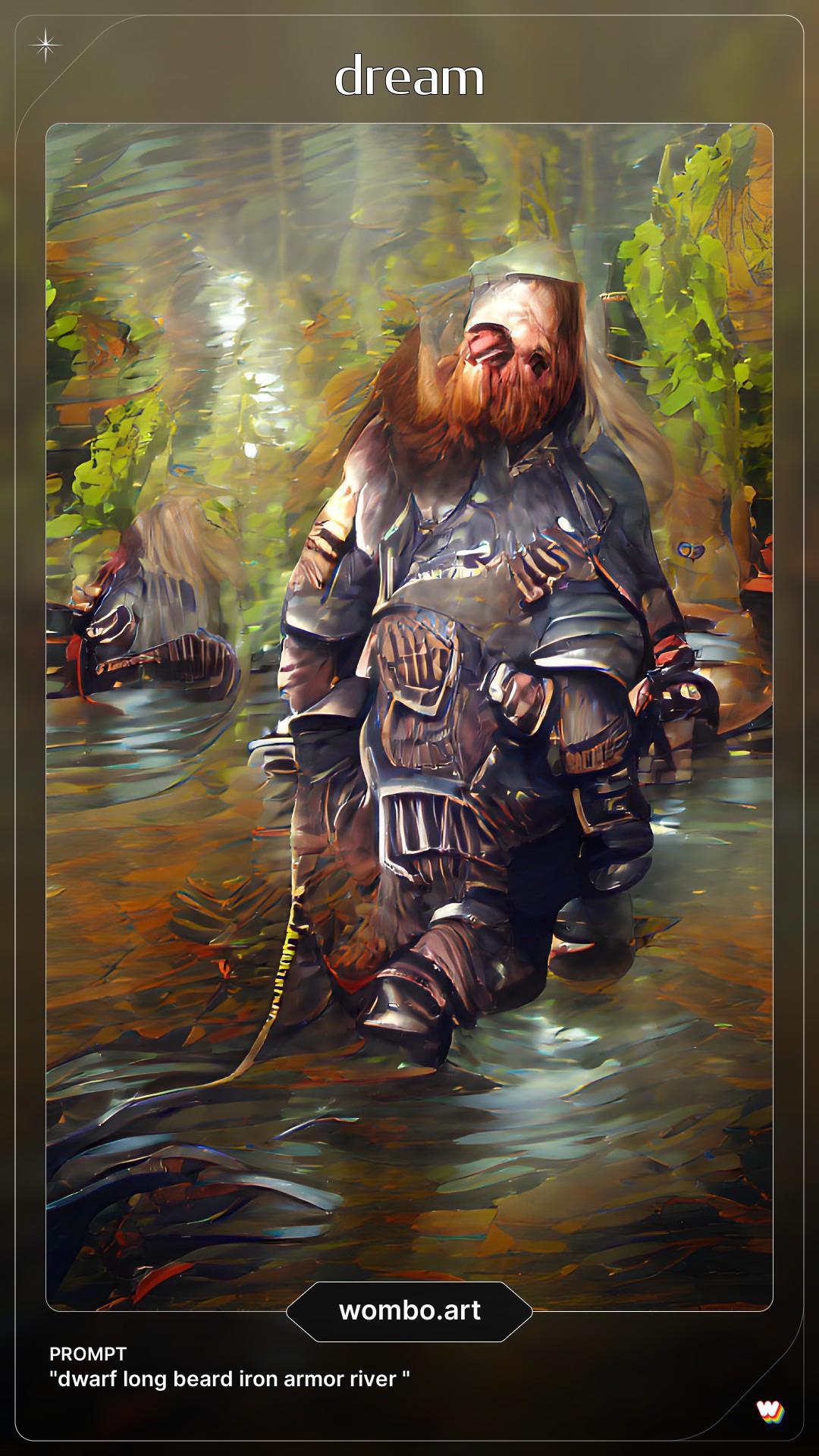 Набор Вомбовских картинок сгенерированных по запросу "гном, дриада, река", с разными вариациями типа "гном с длинной бородой" или "озеро". Малая часть картинок, наделала я их много, чтобы было из чего выбирать:
