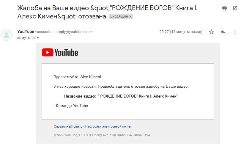 Победа... Но с каким-то неприятным послевкусием. Ютуб не стал утруждаться анализом моих аргументов. Подозреваю, что и мое второе обращение ничего бы не изменило, если бы АЗАПИ не отозвало свои претензии.