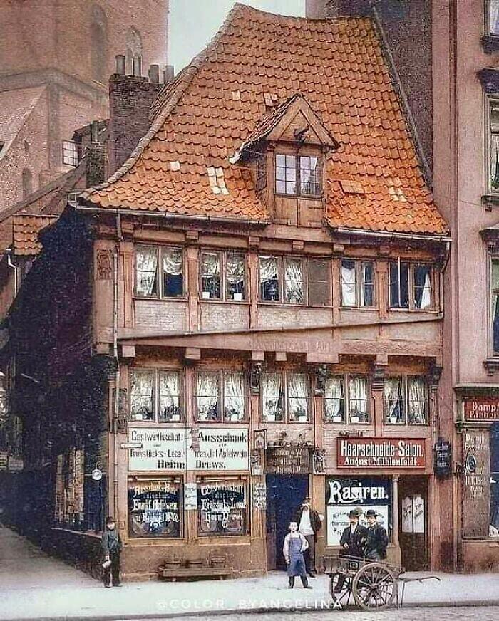 1898 год, Германия, Гамбург, фотография самого старого дома, который был построен в 1524 году и, несмотря на протесты местных жителей, был снесен 8 декабря 1910 года.