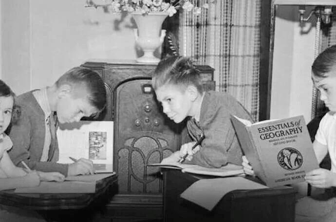 1940-е годы, США, случилось вспышка полиомиелита и дети учились на «дистанционке», как ее сегодня называют. Учителя выступали по радио, дети их слушали и записывали.
