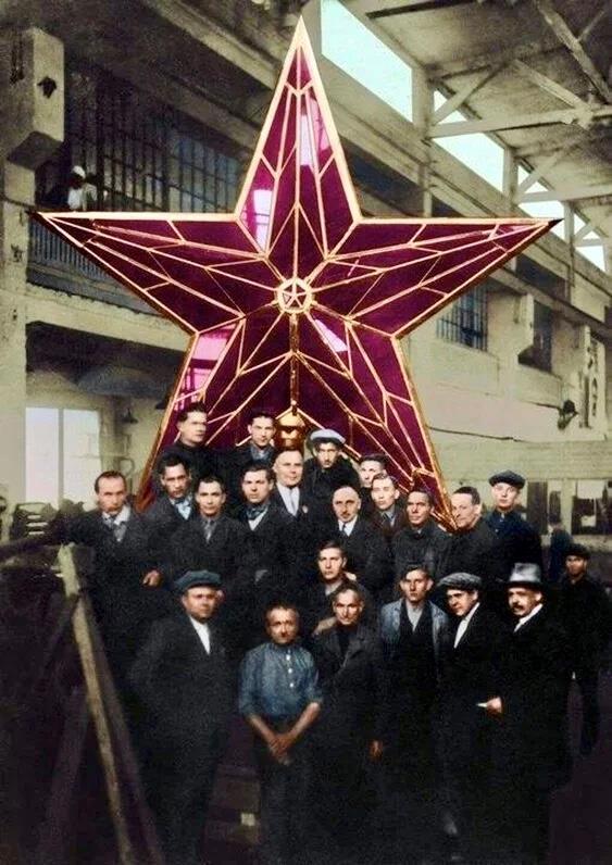 1937 год, рабочие, участвовавшие в создании рубиновых звёзд Кремля.