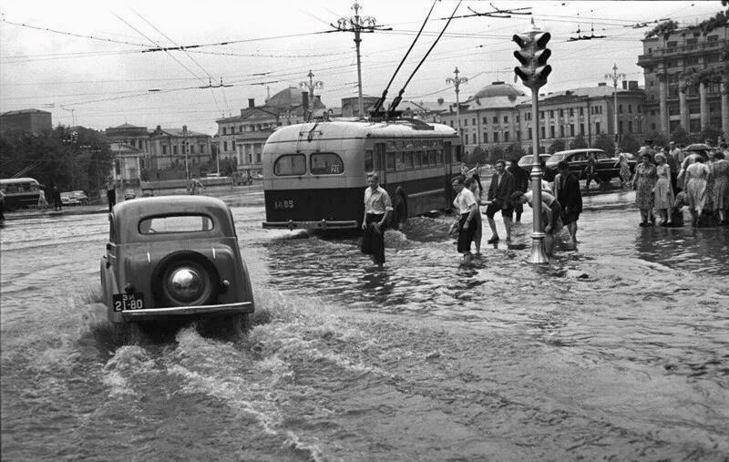 27 июня 1958 года, Москва, «А просто летний дождь прошёл, нормальный летний дождь...», фото Б.М.Косарева.