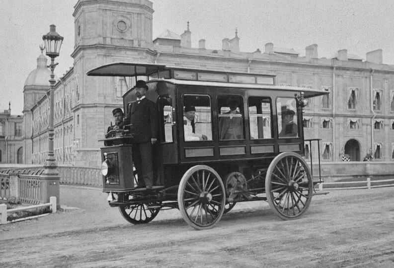 1899 год, Санкт-Петербург, тестовый рейс электрического омнибуса российского инженера Ипполита Романова. Этот омнибус представлял собой электрический автобус на 17 мест, развивающий максимальную скорость 37 км/ч и имевший запас хода в 64 километра.