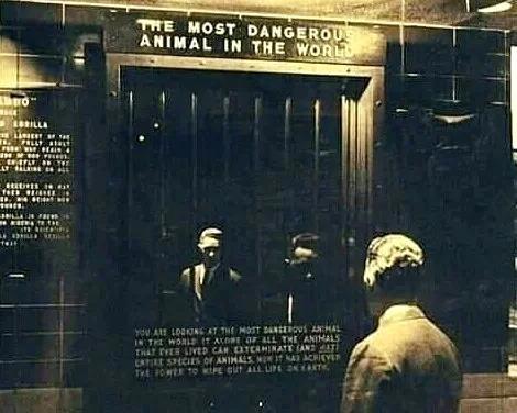 1963 год, США, в зоопарке Бронкса прошла выставка, которая называлась «Самое страшное животное в мире». На стене зеркало.