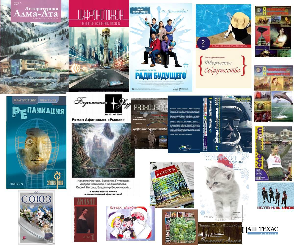 На днях принесло напоминалкой на Фейсбуке. Обложки изданий, где были мои публикации. Не хватает ещё "Fant O clock 20:17", "Аудиогида "Путеводитель по смыслам Алматы" и обложки канала ужастиков. Рассказы, аудиоозвучки, фильм, ещё бы для полного комплекта в будущем опубликованный роман сюда добавить. Особенно горжусь, что почти все рассказы прошли через конкурсы, занимали призовые места, отбирались жюри среди большого количества авторов. Ну а сколько в процессе появилось интересных знакомых!Вообще иногда вмешивался просто случай. Например, на Проза ру, случайно наткнулась на конкурс фэнтези с призами. Так родился симпатичный рассказик "Ночь белого единорога". Участников было много, я особо ни на что не надеялась. Все там были крутые, рассказ критиковали. А он взял и занял 2-3 место и принёс мне приз СД плеер в виде пиратского сундука. До сих пор украшает интерьер, работает, правда, уже только радио. Хотя СД скорее всего можно починить.С Казахфильмом тоже интересно получилось. Просто однажды через знакомых я передала туда мои рассказы. Насколько я помню, "Ночь белого единорога" и "Потерянный мир". Ну прошло время, я и забыла про них. Скорее всего валялись бы и применились для каких либо нужд. Но однажды на них наткнулся режиссёр, который как раз искал автора для доработки сценария. Написал на указанный электронный адрес и процесс пошёл.Похожий случай был на Литературном фестивале в 2012. Я прошла сразу на два мастер-класса, детский и прозу. Сказку мою покритиковали. Кстати потом она у меня неоднократно публиковалась. Я приуныла, а на следующий день наш мастер Валерий Михайлович Воскобойников попросил меня почитать другой мой рассказ. Оказывается, ему дали распечатки авторов с мастер-класса прозы и он случайно увидел мои тексты, прочитал и ему очень понравилось. Больше всего "Последнее испытание". Высокая оценка мастера такого уровня многого стоит.Так же, нечаянно заглянув на сайт "Литературная Алма-ата", я увидела конкурс миниатюр и решила поучаствовать. Не только заняла призовое место, но и познакомилась с замечательными людьми. К сожалению прекрасных женщин Райхан Бектемисовой и Людмилой Мананниковой уже нет. И кстати на этом же сайте я заняла первое место в лит конкурсе сказок, который устраивал ТЮЗ. И директор ТЮЗА вручила мне диплом. Вот так и складывается всё. Были и Росконы, Литературные фестивали, конкурсы. Где-то сложно, где-то волей случая, где-то своими усилиями, а где-то с помощью друзей. Я очень ценю всех с кем шла по этому пути и, надеюсь, и дальше всё будет хорошо.