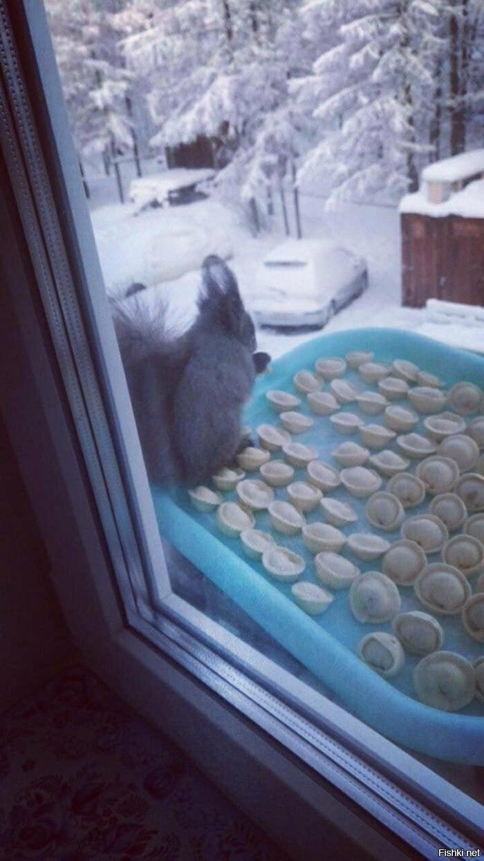 Да, ну вы знаете, когда холодно, хочется больше есть. Потому белочка лепит пельмени.