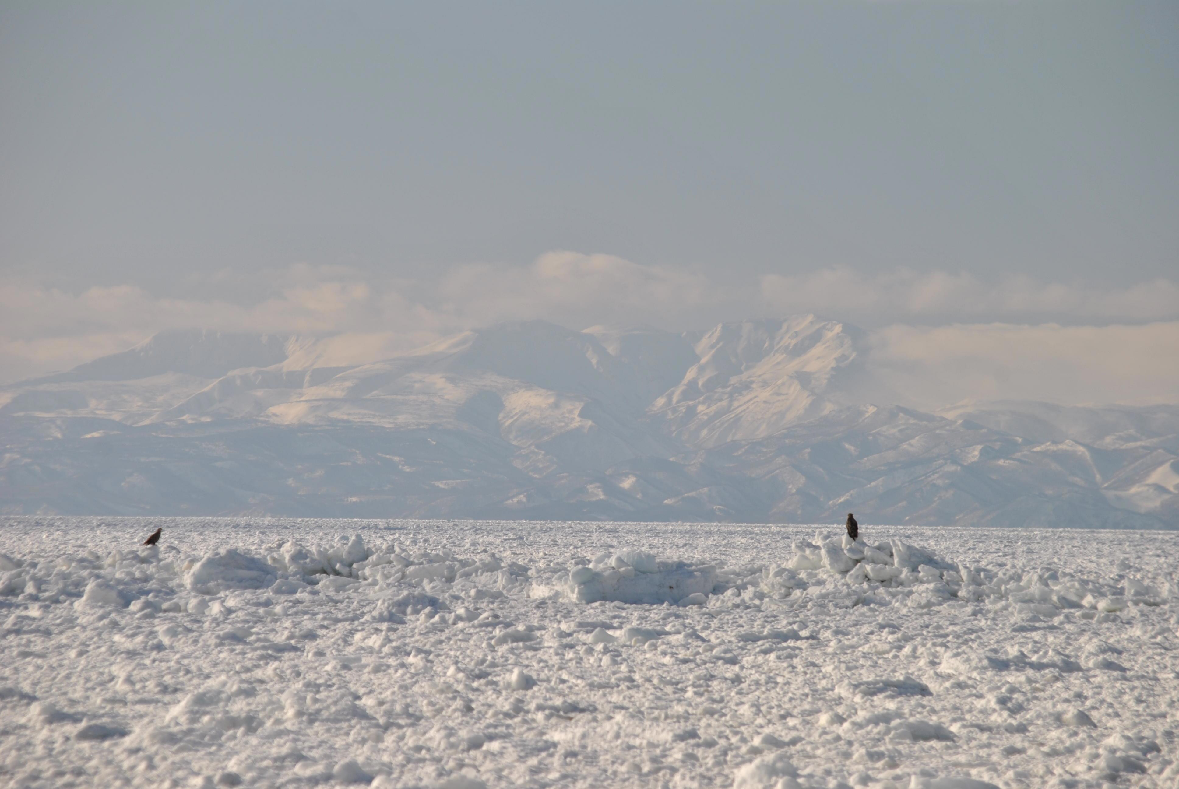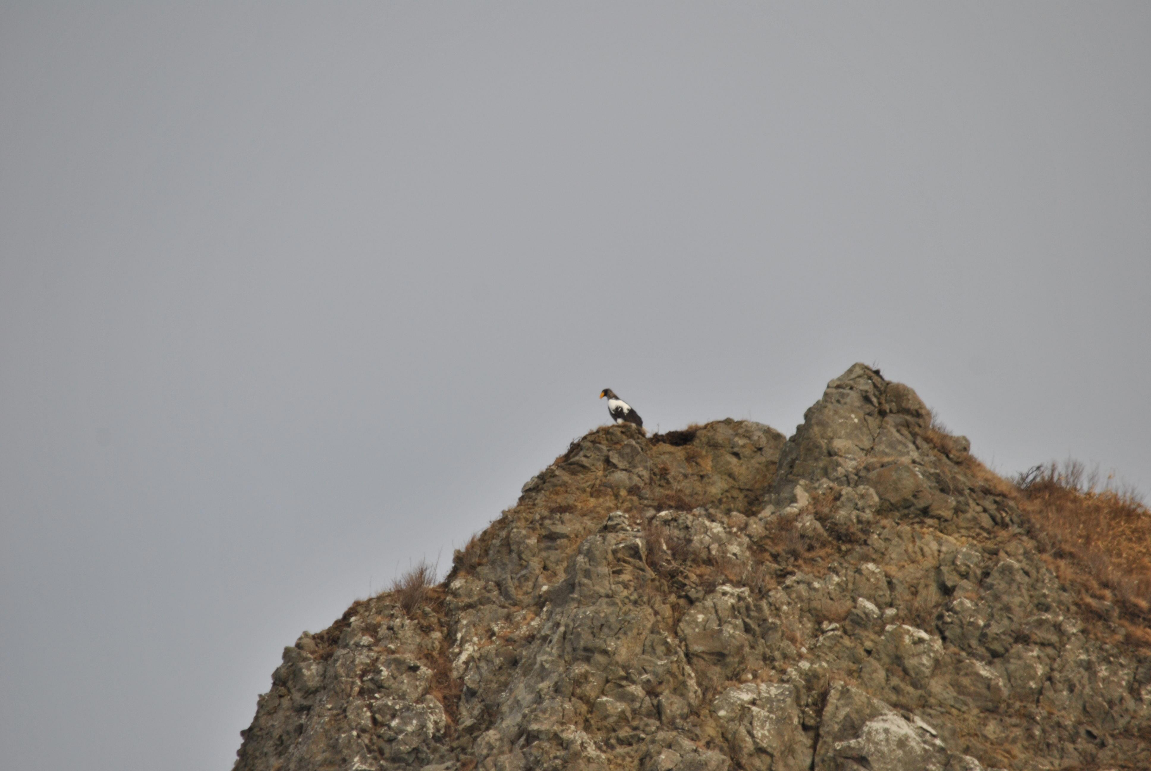 Записав наблюдение, пошли дальше... И, увлекшись, домахали до границы заповедника, благо не так далеко. Ну и встретили еще с десяток орланов, сидящих на скалах и льдах.