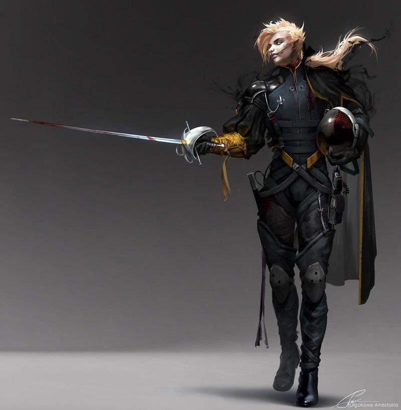 Немного наивна и идеалистична, но внутри довольно порочна. Очень привлекательна и харизматична, легко привлекает других на свою сторону. Преследует свои цели без оглядки на мораль или последствия. Ее главная цель - выжить, и сделать это с максимальным комфортом. Она носит кожаные доспехи, так как предпочитает снайперские сражения на очень дальних дистанциях. Кибернетические руки и ноги дают ей исключительную скорость в бою. Она убийца. И ей нравится огонь. Особенно его запах по утрам. Запах победы.