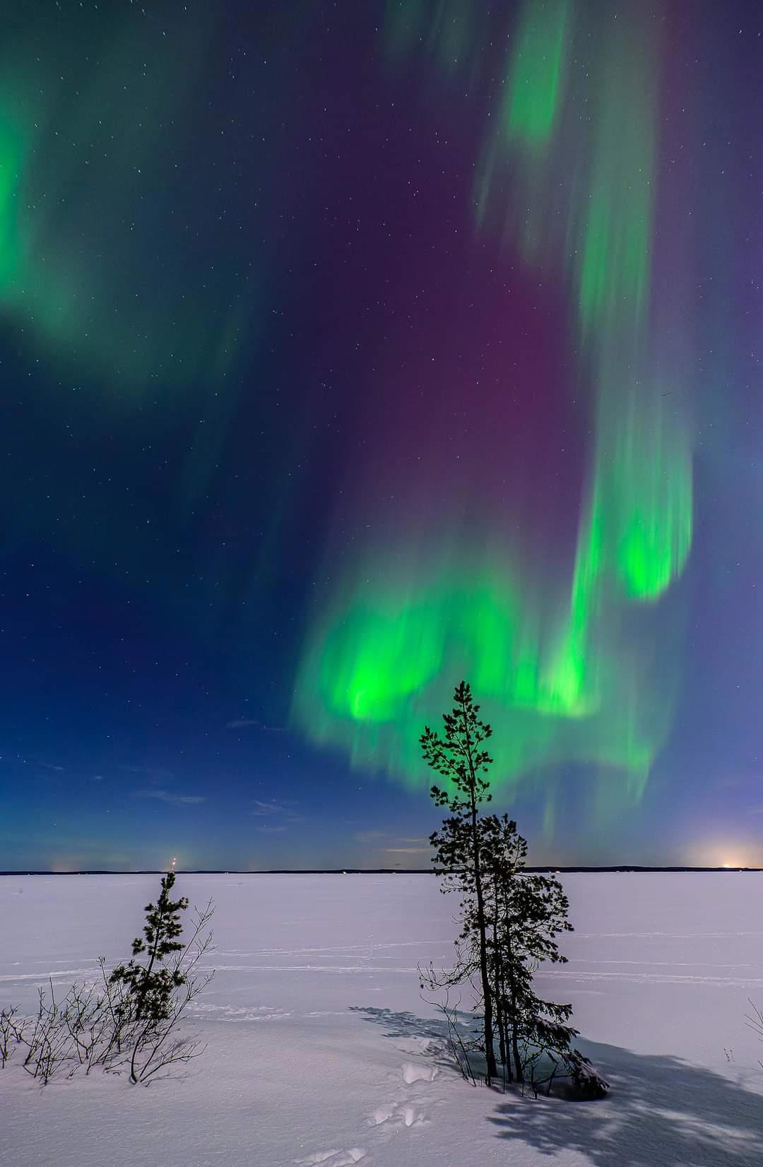 Всегда мечтала увидеть северное сияние, но за двенадцать лет жизни в Финляндии так и не довелось. Здесь часто бывает, и не только зимой, но это надо либо жить не на первом этаже, либо... вот так чаще ночами гулять над озёрами.
