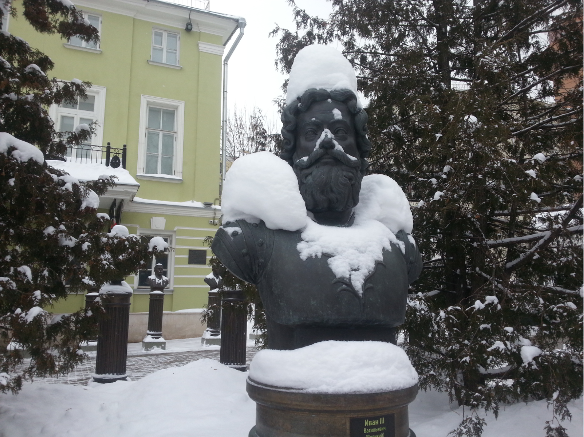Аллея правителей России в зимнее время смотрится на редкость мило и безобидно: