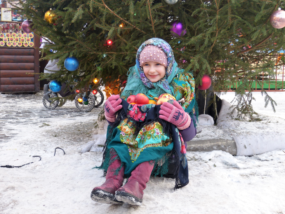 В десяти шагах от этого самовара добрые женщины усадили девочку под ёлочкой на снег и задавали ей странные вопросы: "Тепло ли тебе, девица? Тепло ли тебе, красная? Тепло ли тебе, лапушка?"