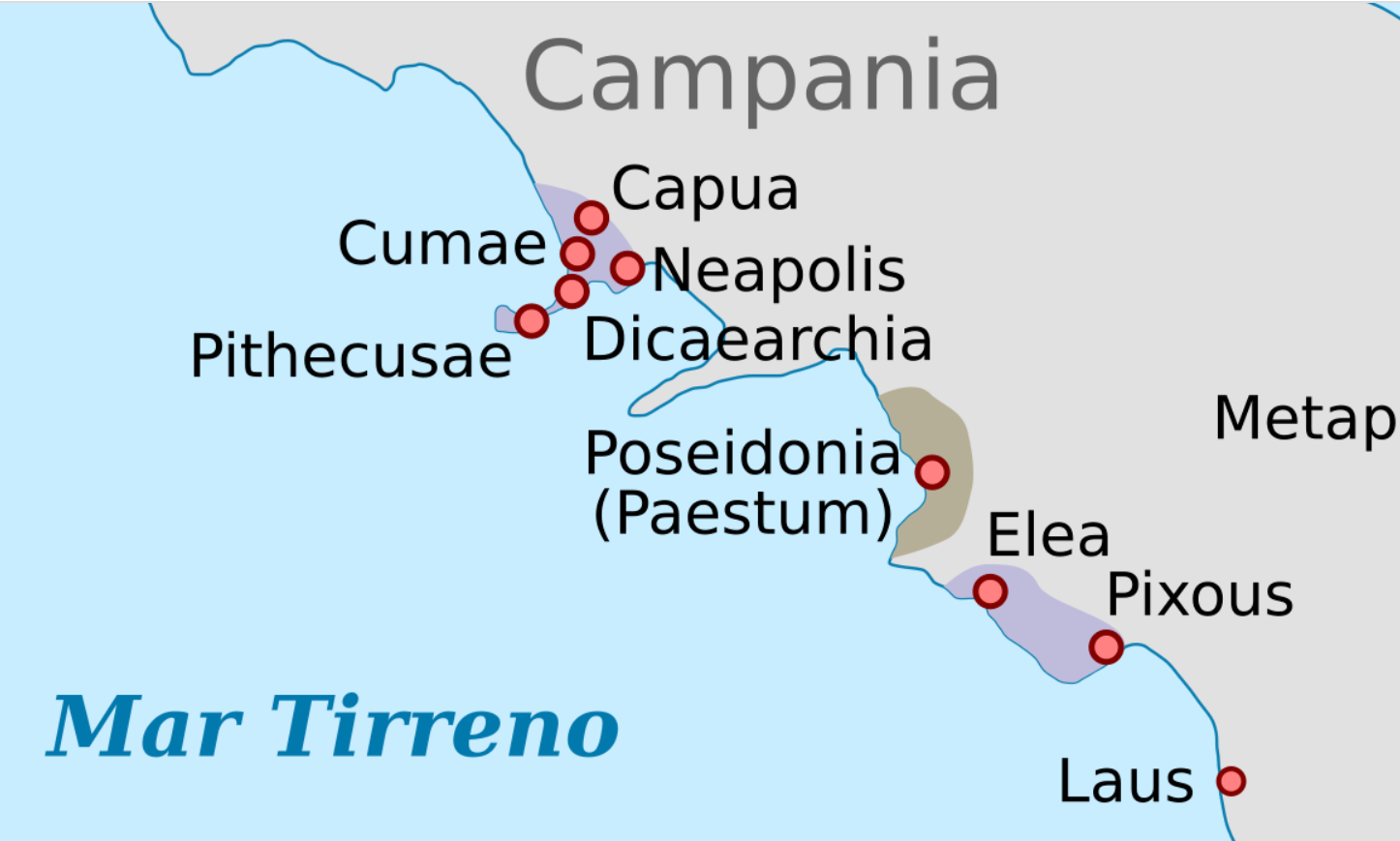 Первое поселение греков в Италии возникло в Питекуссах на нынешнем острове Искья. Археологи датируют его возникновение 790 — 780 годами до н. э. Примерно через полвека греческие колонисты основали Кумы в материковой части Италии. До них тут уже жили оски. Логично преположить, что именно тогда залив и получил название Кратер.
