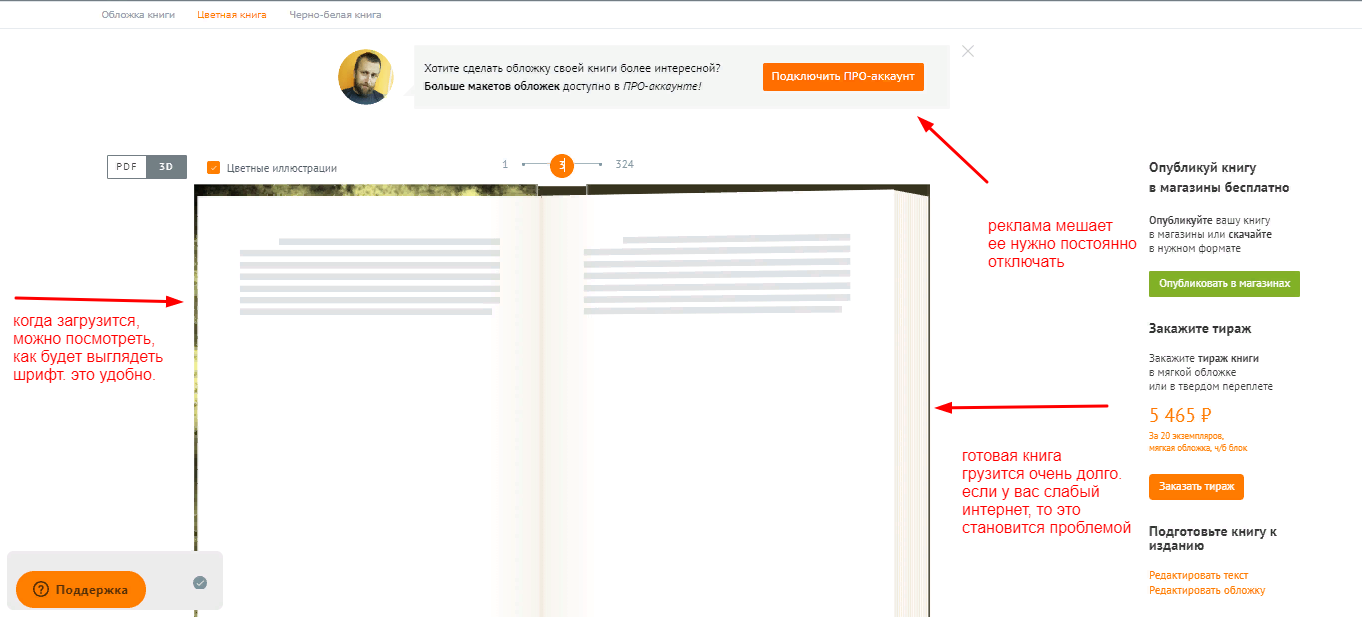 Не советую покупать ПРО-аккаунт. При хорошей натренированности и больших знаниях можно создать книгу в три раза лучше со стандартным пакетом, нежели с профессиональным. Можно отлично варить кашу в котелке на костре, но постоянно портить пиццу в духовке. Так что не рвитесь сразу вкладывать деньги в то, в чём вы, возможно, не сможете разобраться.