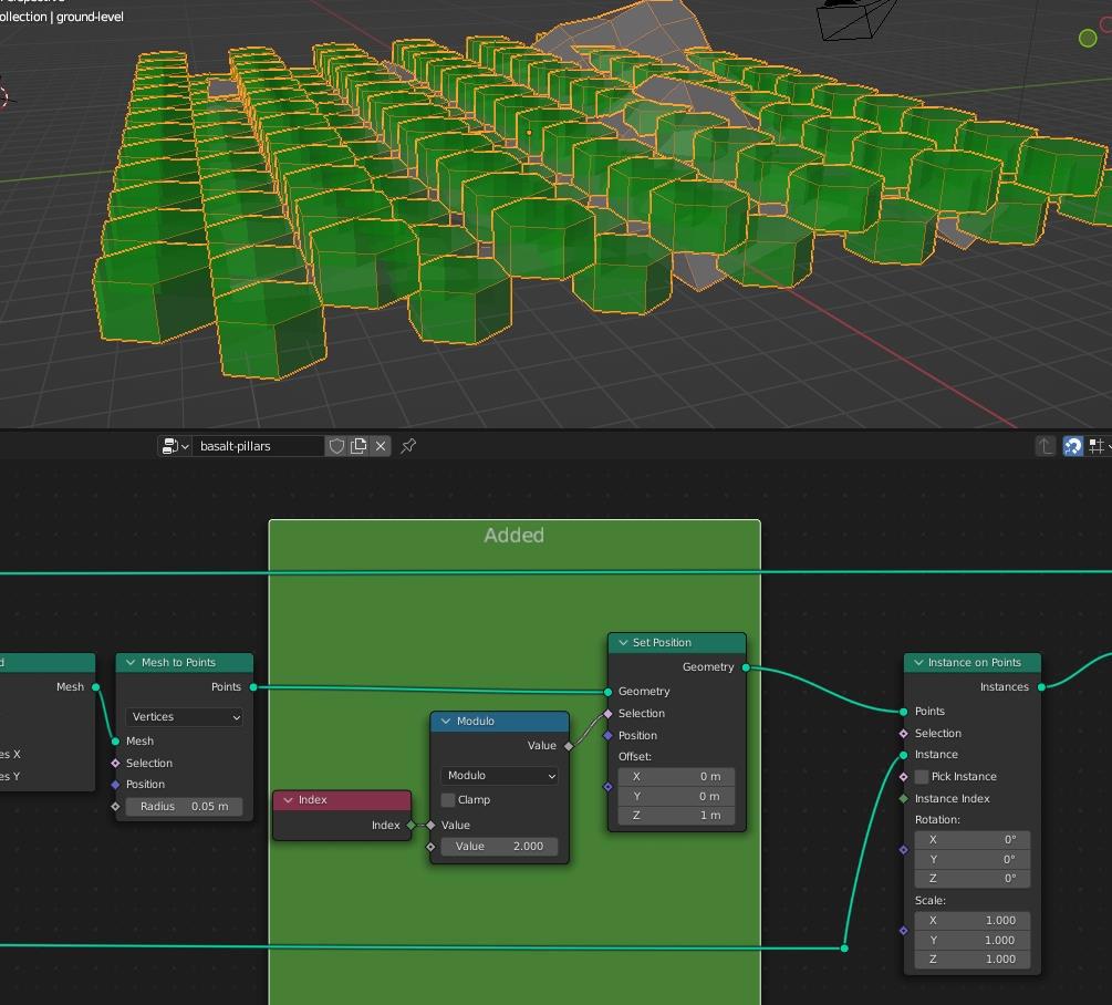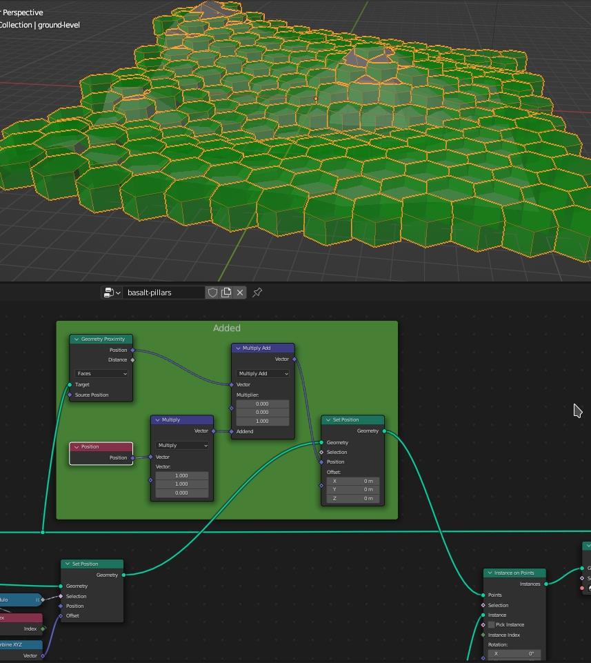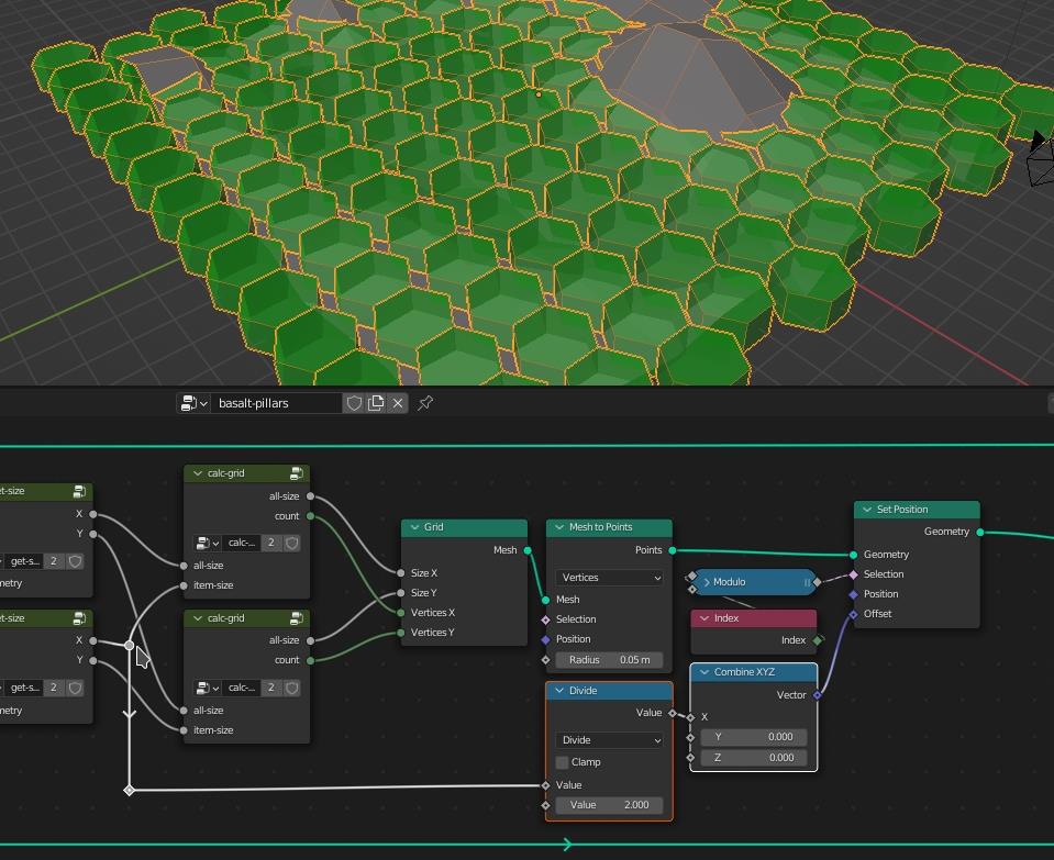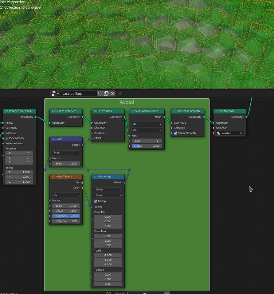 Blender 3: шестиугольные структуры из камня с помощью geometry nodes