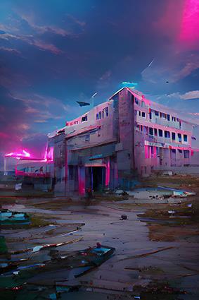 А вчера нейросеть предложила мне свой вариант, который нравится мне не меньше. Это заброшенный корпус исследовательских лабораторий на Парисе-II, который атаковали десантники. Хорошая картинка. Жаль только что на обложке бóльшая часть её закрыта текстом. Ну, пусть хоть здесь целиком будет.