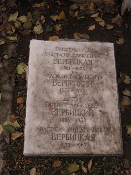 Писательница Анастасия Вербицкая умерла в Москве 16 января 1928 года и похоронена на Новодевичьем кладбище.