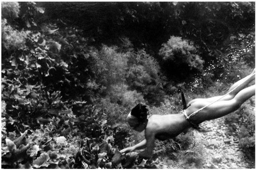 Это позволяло легче и быстрее погружаться на глубину, а также делало работу под водой проще и безопаснее: ничего не стесняло движения и не могло зацепиться за камни или кораллы, не дав всплыть на поверхность.