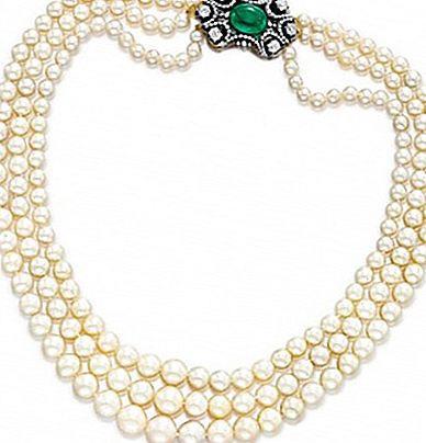 Колье из жемчуга, состоящее из трех нитей, было продано на аукционе Кристи в Нью-Йорке. Ожерелье состоит из 180 натуральных природных жемчужин, которые были тщательно отобраны по размеру, начиная примерно от 5 до 11 мм в диаметре. Стоит отметить, что к украшению добавили кабошон из изумруда и несколько бриллиантов.