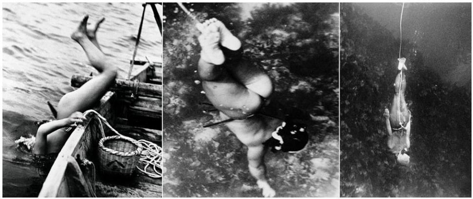 Самые известные в мире ныряльщики за жемчугом - японские ныряльщики ама, что в переводе с японского означает "человек моря". Средняя глубина, на которую ныряли ама - около 20 метров, а время, проводимое под водой - от 45 секунд до 2 минут! Но самое интересное, что большинство ама были молодыми девушками! Считалось, что они лучше мужчин переносят переохлаждение и длительные задержки дыхания. Во всем мире эти наряльщицы известны как "обнаженные ама", потому что девушки ныряли без одежды.
