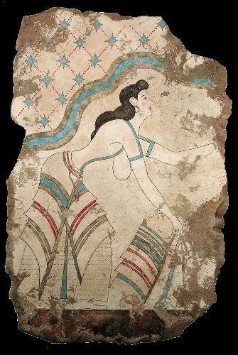 Минойские фрески сильно отличаются от Древне Греческих. Даже палитра цветов совсем другая.