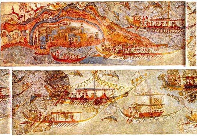 О минойской цивилизации напоминают сохранившиеся с той эпохи фрески и мифы о древней Атлантиде, рассказанные Платоном.