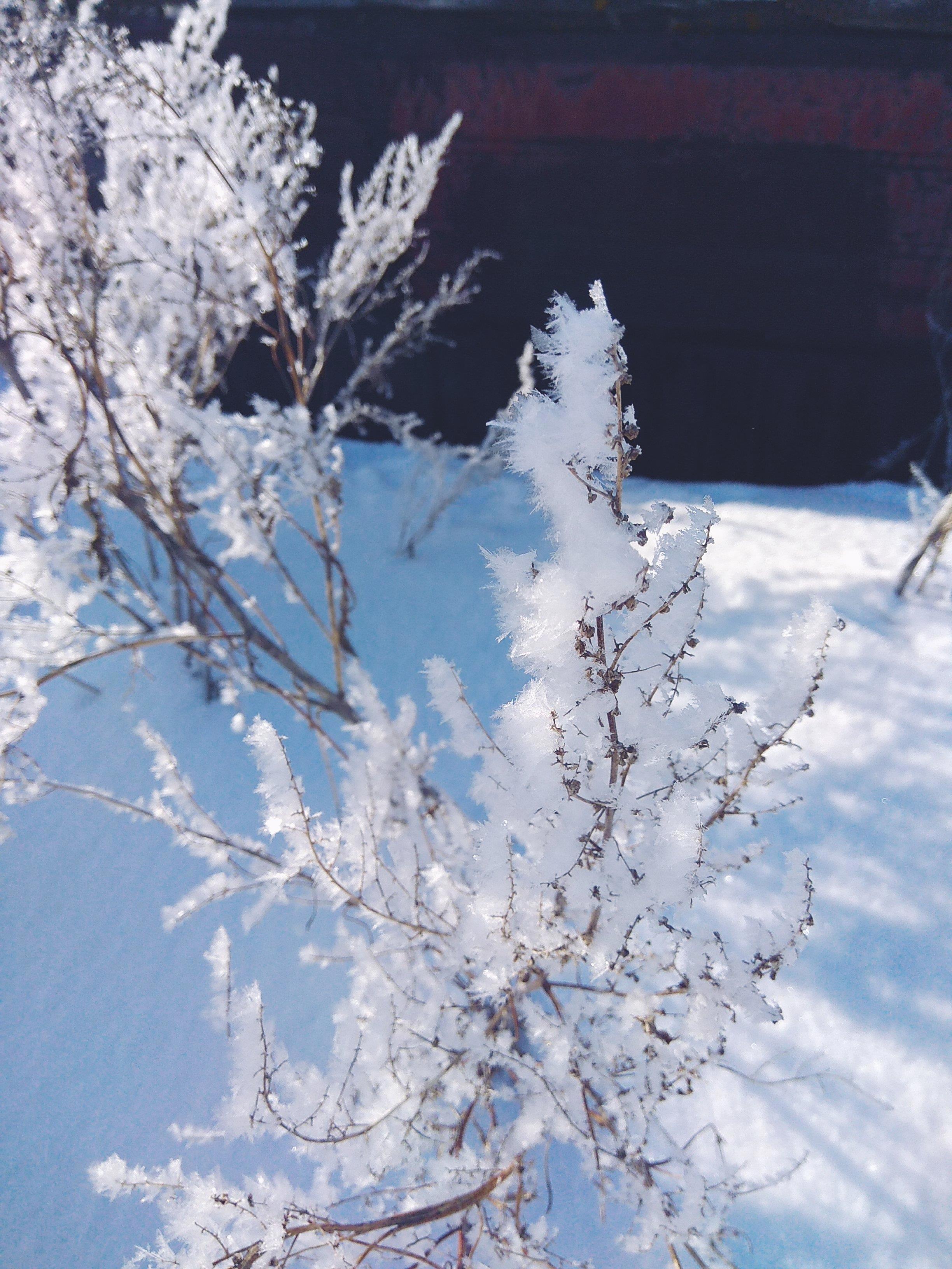 Сегодня успокаиваю себя булочкой с клубничным желе и невероятно красивой погодой за окном (успела на остатки роскоши инея).