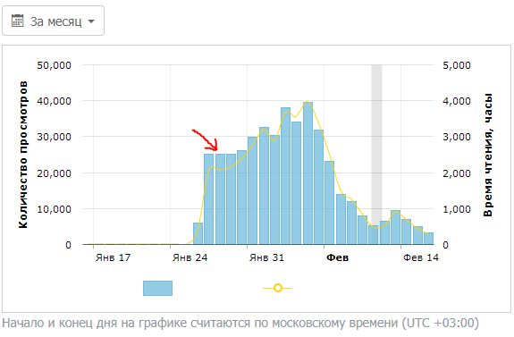 Более внимательные же могли заметить вот это удивительное плато на графике просмотров.