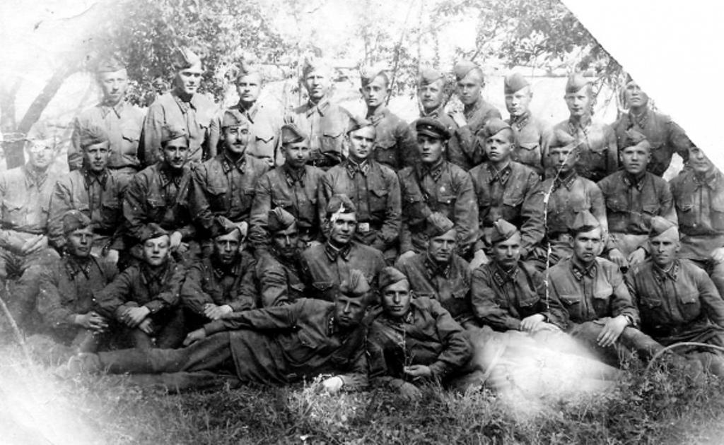 Сидит во втором ряду в центре (в фуражке) лейтенант Алёшкин Афанасий Иванович.