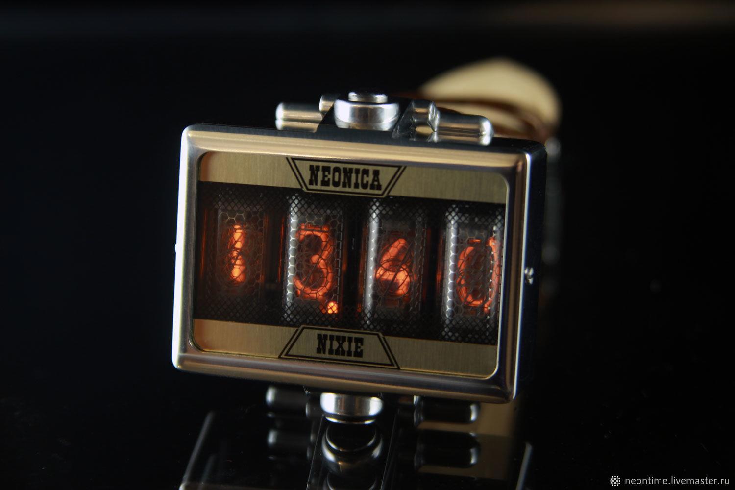 Эти часы сделаны на газоразрядных лампах накаливания ИН-12. Мастер из Санкт-Петербурга. Я даже с ним переписывался насчет использования изображения часов на обложке. Он был не против.