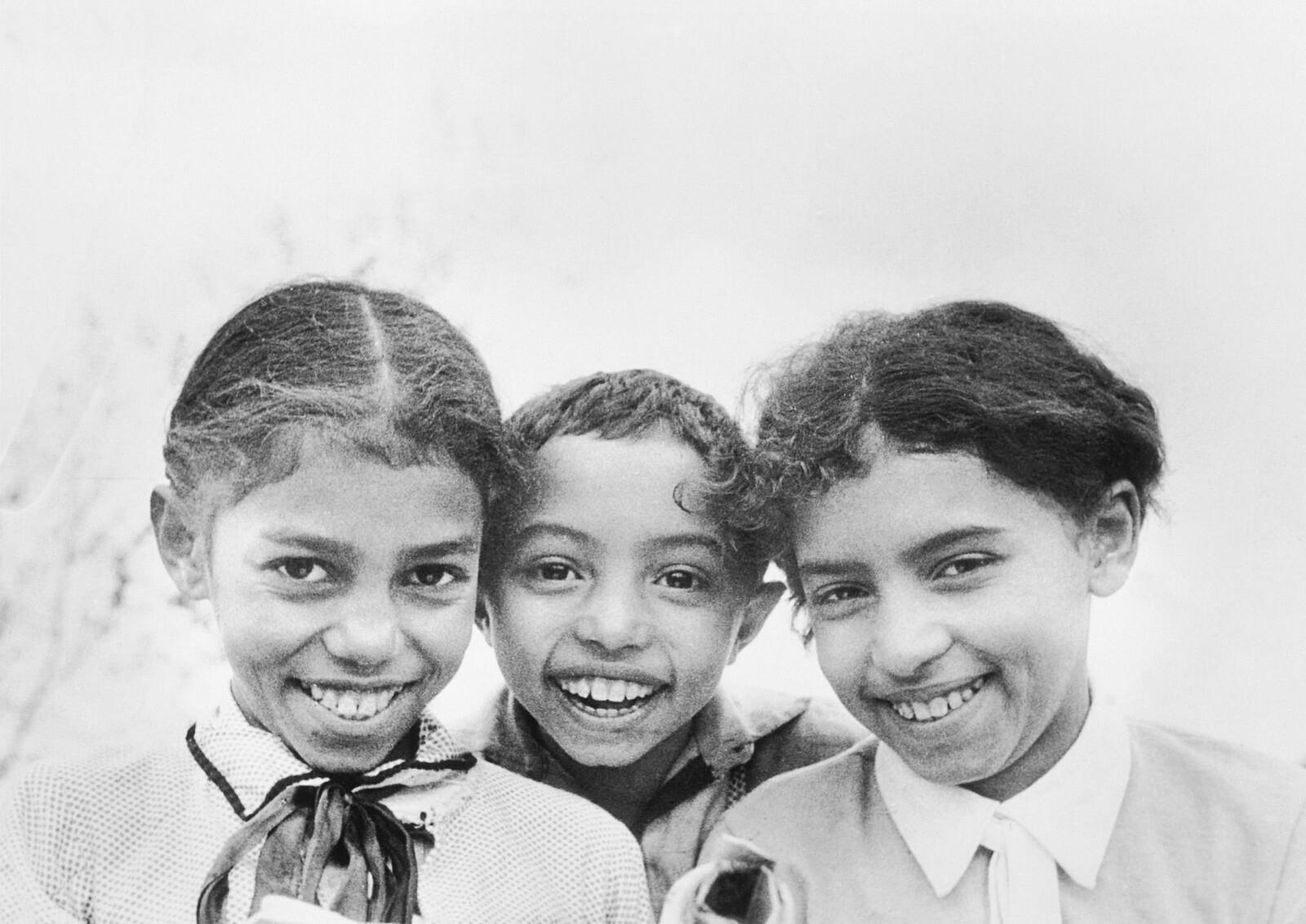 1936 год. «Негры юга Кавказа работают на полях примерно так же, как и негры нашего Юга. На снимке трое из подрастающего поколения колонии негров в колхозе, в Очамчырском районе Абхазской АССР. Этих молодых людей зовут Абаш Нуца, Шамиль Чанба и Циба Чанба».