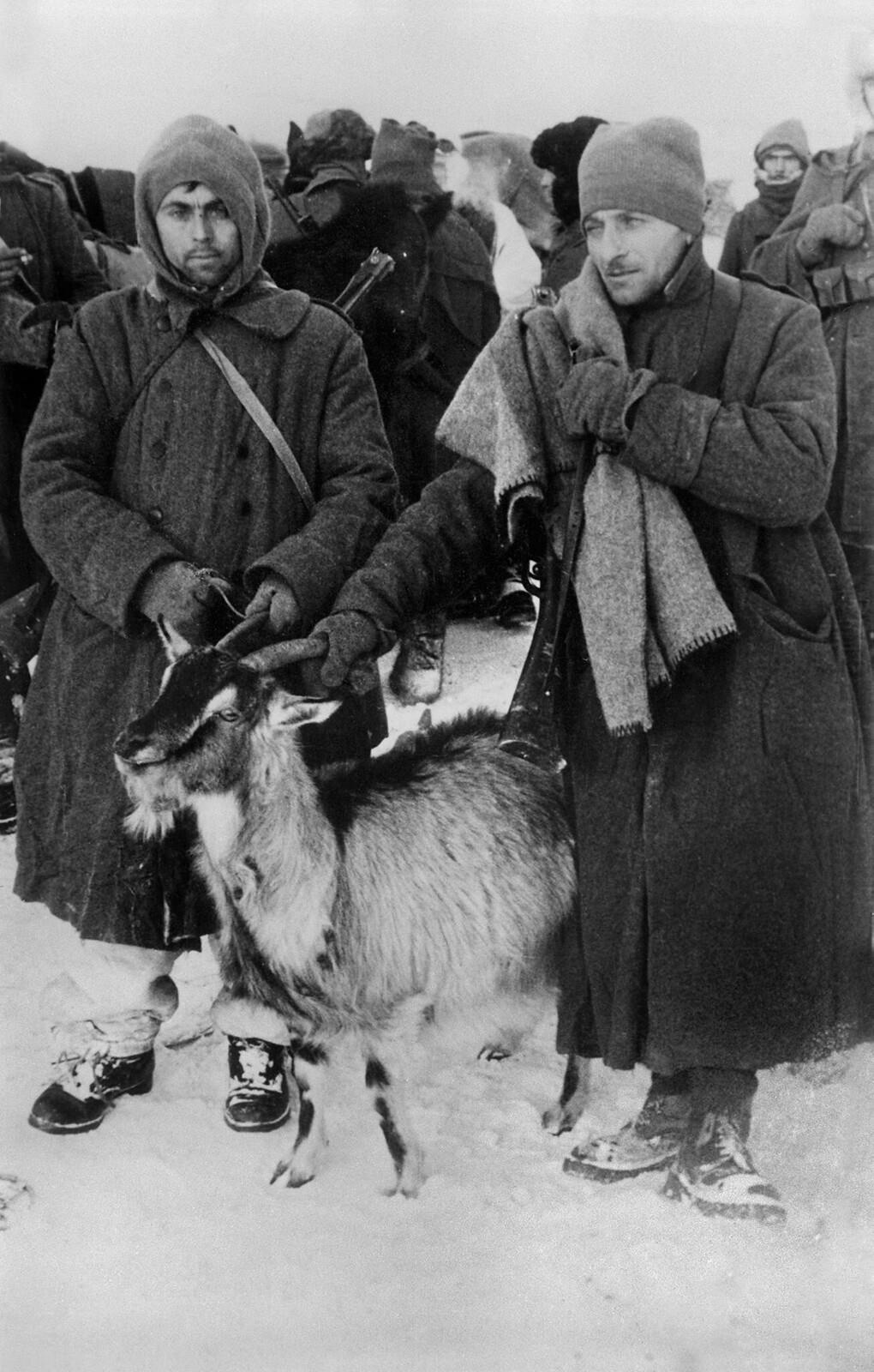 1943 год. Итальянские солдаты во время отступления из Советского Союза. 2-ая альпийская дивизия «Тридентина», 6-й полк, батальон «Верона».