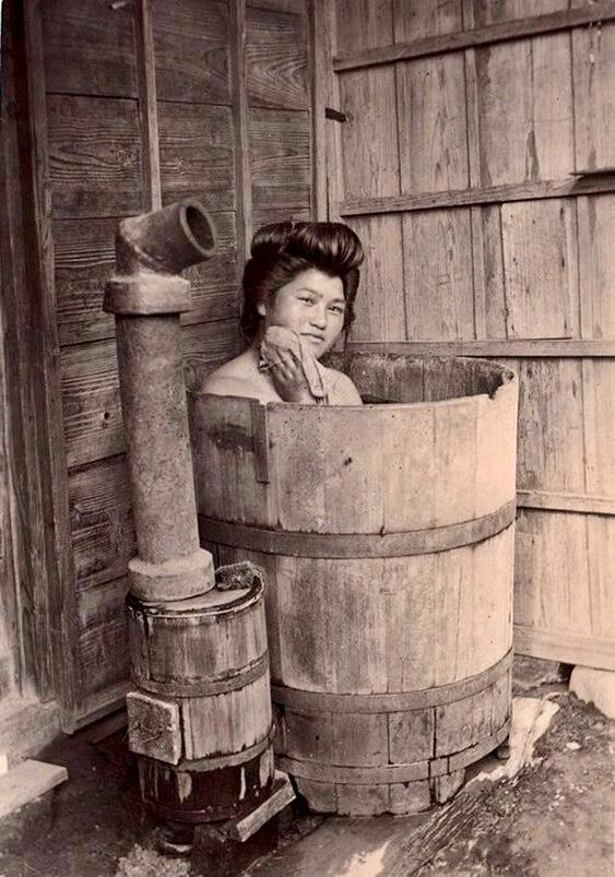 1911 год, Япония. Купающаяся женщина в ванне о-фуро.