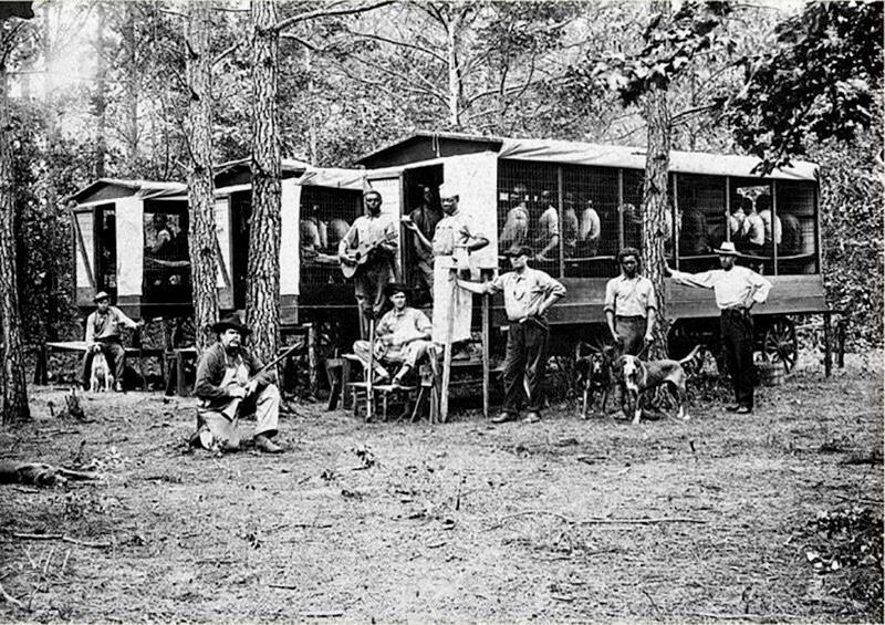1910 год, США, Северная Каролина, Округ Питт. Арестованные, в немалой части, за бродяжничество, то есть, за отсутствие жилья и работы, чернокожие мужчины будут использоваться как бесплатная рабочая сила. Вагончики с заключенными охраняют надсмотрщики с собаками. Рабство, отмененное законом, просто приняло иные формы.
