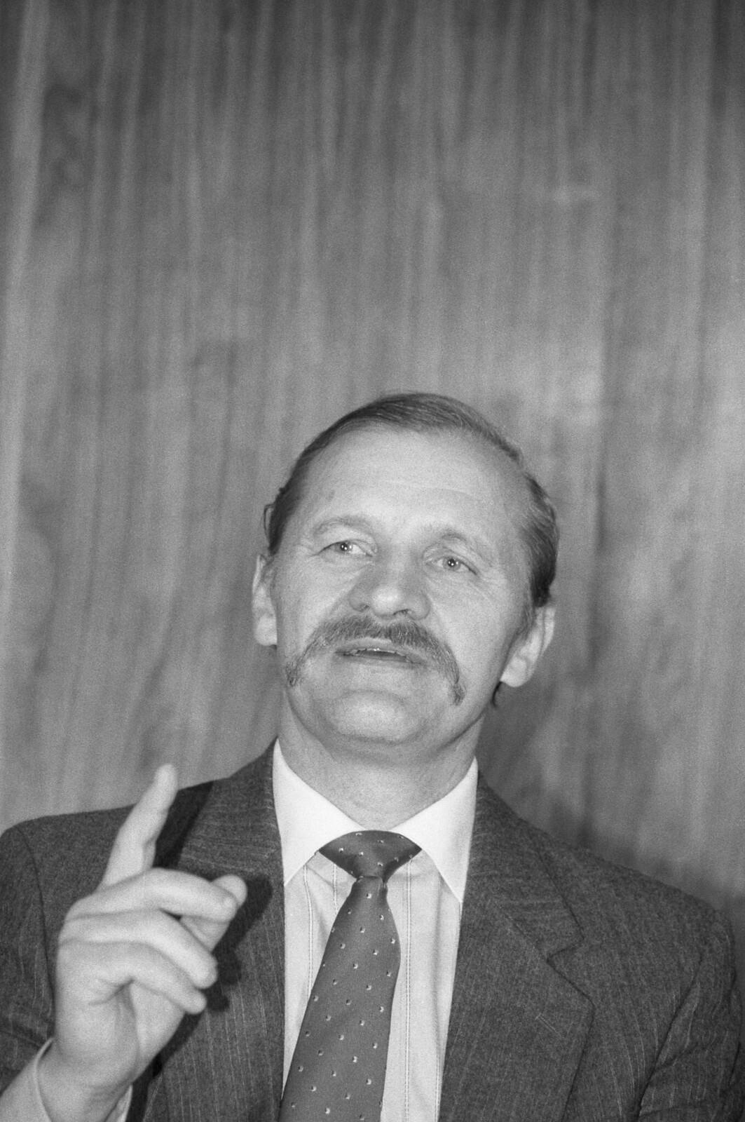 1985 год. Виталий Сергеевич Юрченко, начальник 5-го отдела Управления «К» (внешняя контрразведка) Первого главного управления КГБ СССР, бежавший в Соединенные Штаты, а затем вернувшийся в Советский Союз, выступает на пресс-конференции в советском посольстве в Вашингтоне.