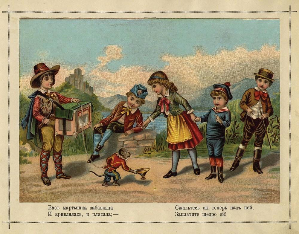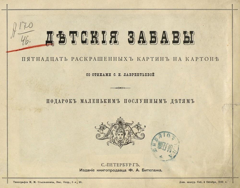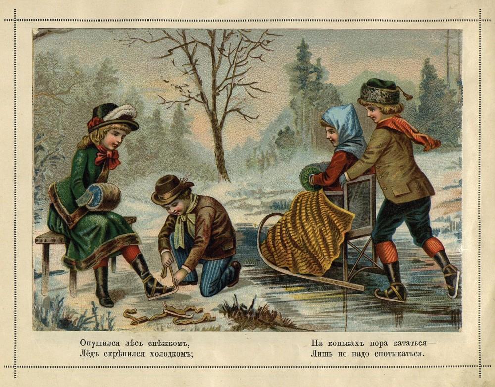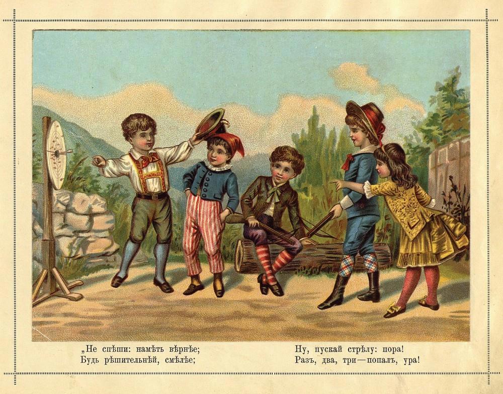 1891 год. Детские забавы. 15 раскрашенных картин на картоне со стихами С.И.Лаврентьевой.