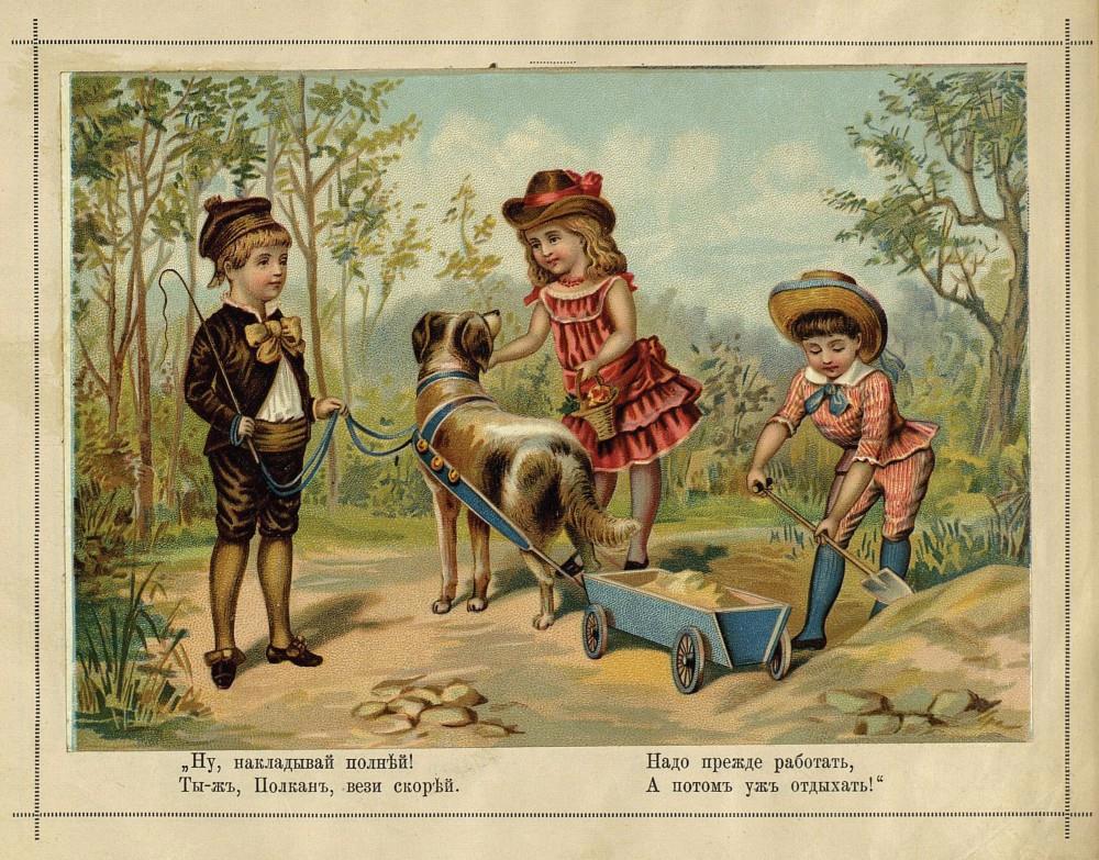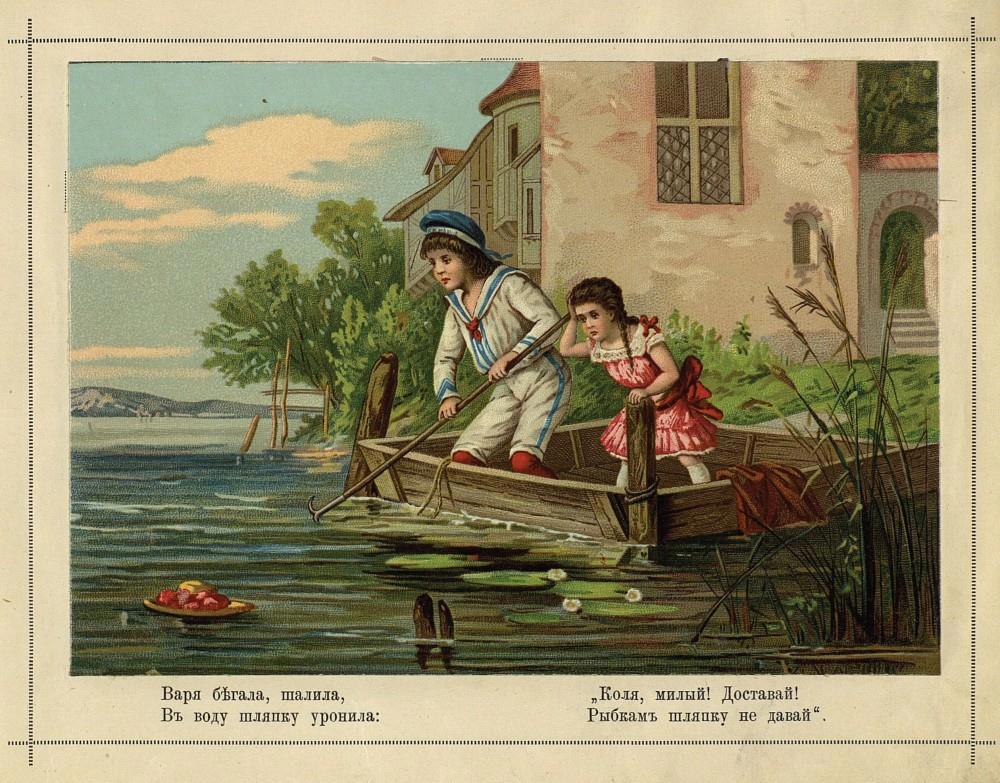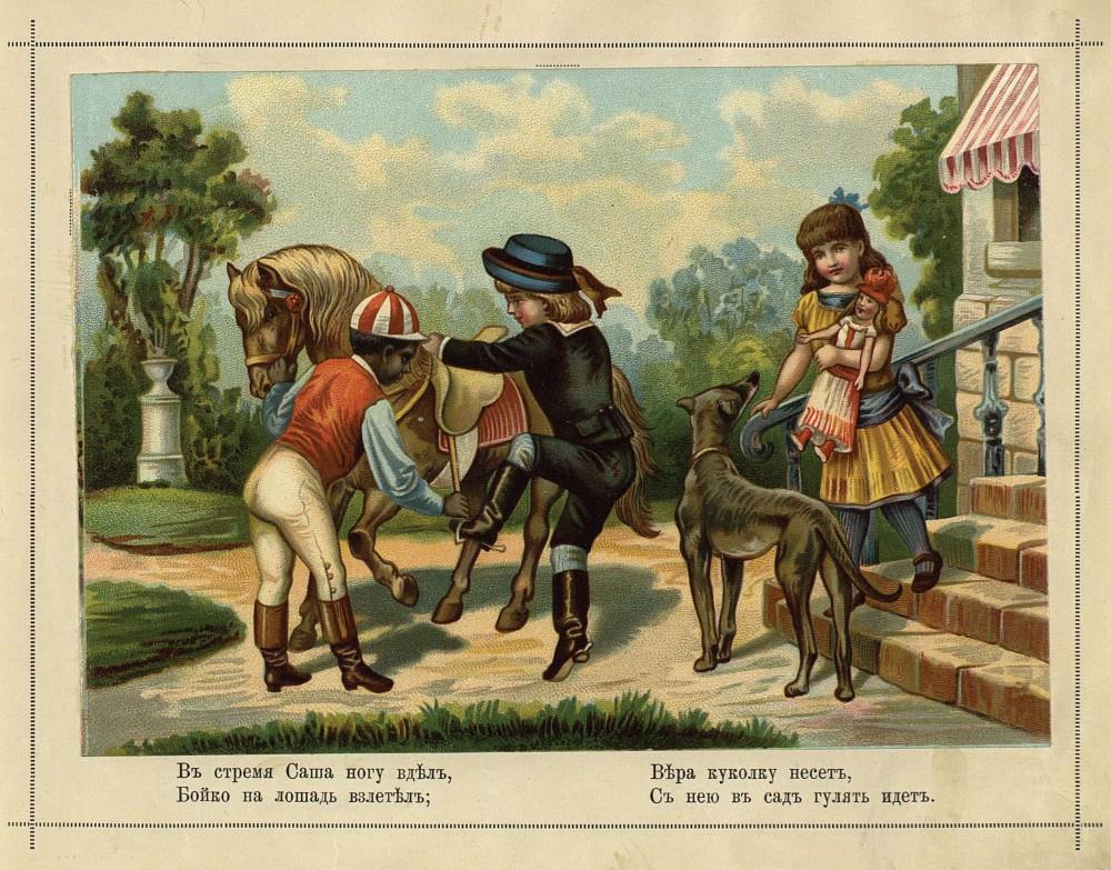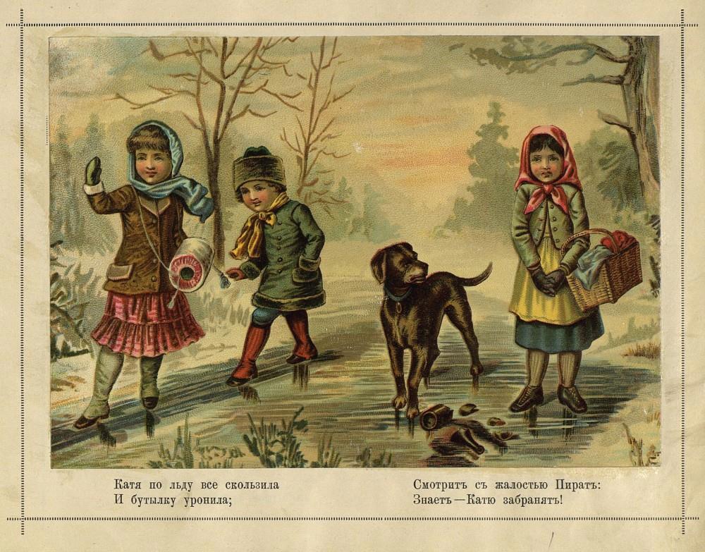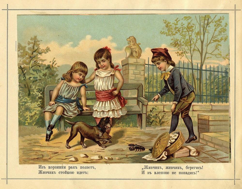 1891 год. Детские забавы. 15 раскрашенных картин на картоне со стихами С.И.Лаврентьевой.