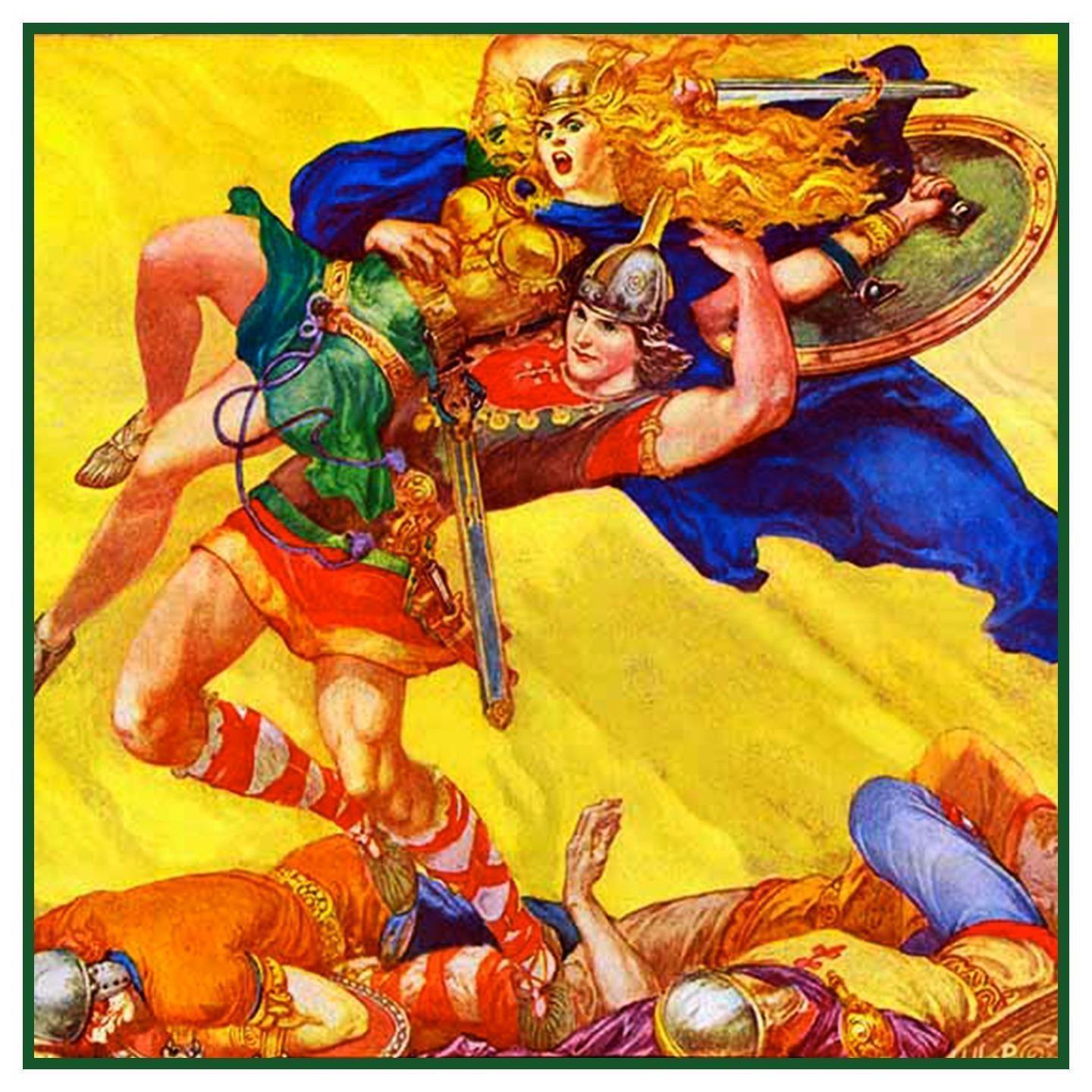 Это не он сам, это отважный и могучий герой Кухулин, бесчестно победив в бою непобедимую колдунью-воительницу Айфе, волочет ее в лагерь своей наставницы Скатах, чтобы... ну, не только для этого, но и не без того.
