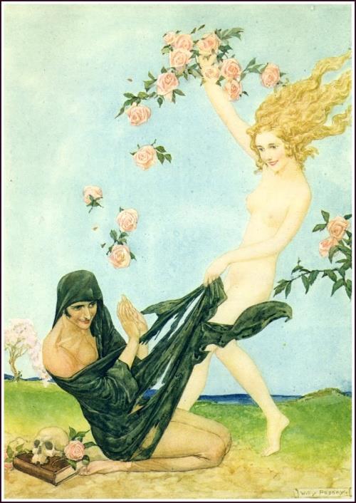 Англия тем временем сходила с ума от сказочных иллюстраций Артура Рэкхема (могу и о нем как-то рассказать, если хотите), и венгерский художник-сказочник пришелся ко двору: Поганю заказали первую его по-настоящему большую и самостоятельную работу — иллюстрации и виньетки к сборнику валлийских легенд The Welsh Fairy Book.