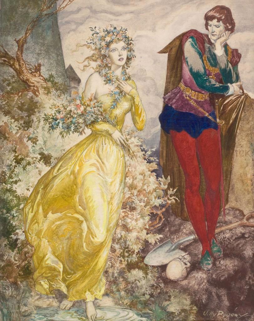 А вот по такому поводу и сам приснопомянутый принц, безучастно взирающий на безумную Офелию с лопатой наготове. Не совсем детская сказочка. Ну да ладно.