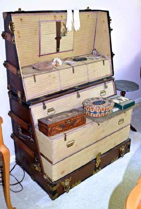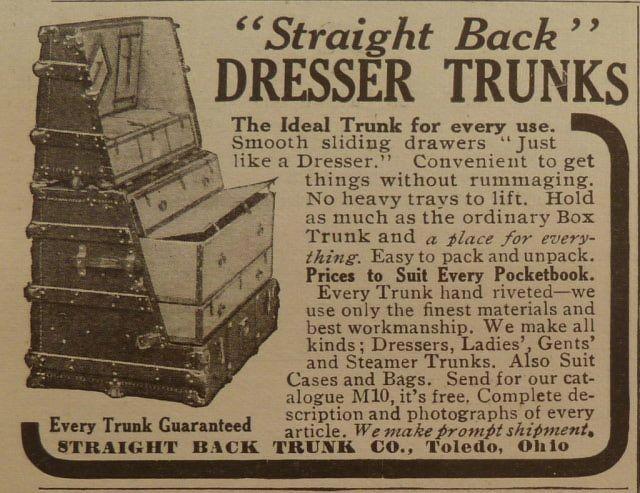 Например, вот этот сундук. Вероятно он был сделан Фрэнком А. Столлманом (Stallman) из Колумбуса, штат Огайо. Это так называемый театрального комод Столлмана (Stallman). Производились они в 1890-х до начала 1900-х годов, и были очень популярны среди исполнителей в театрах того времени по всей Америке.
