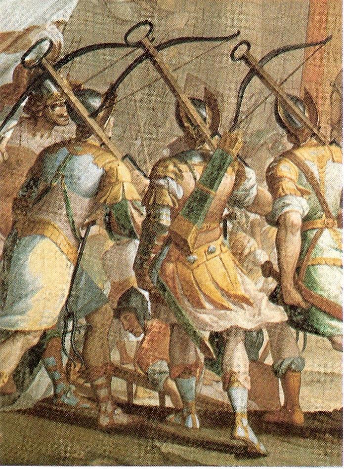 Ладзаро Тавароне. Генуэзские арбалетчики. Фреска из Palazzo Cattaneo-Adorno в Генуе.