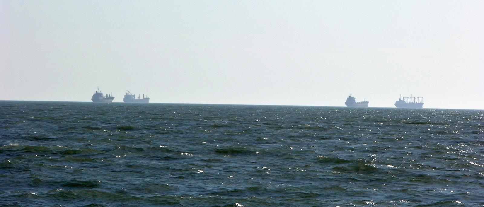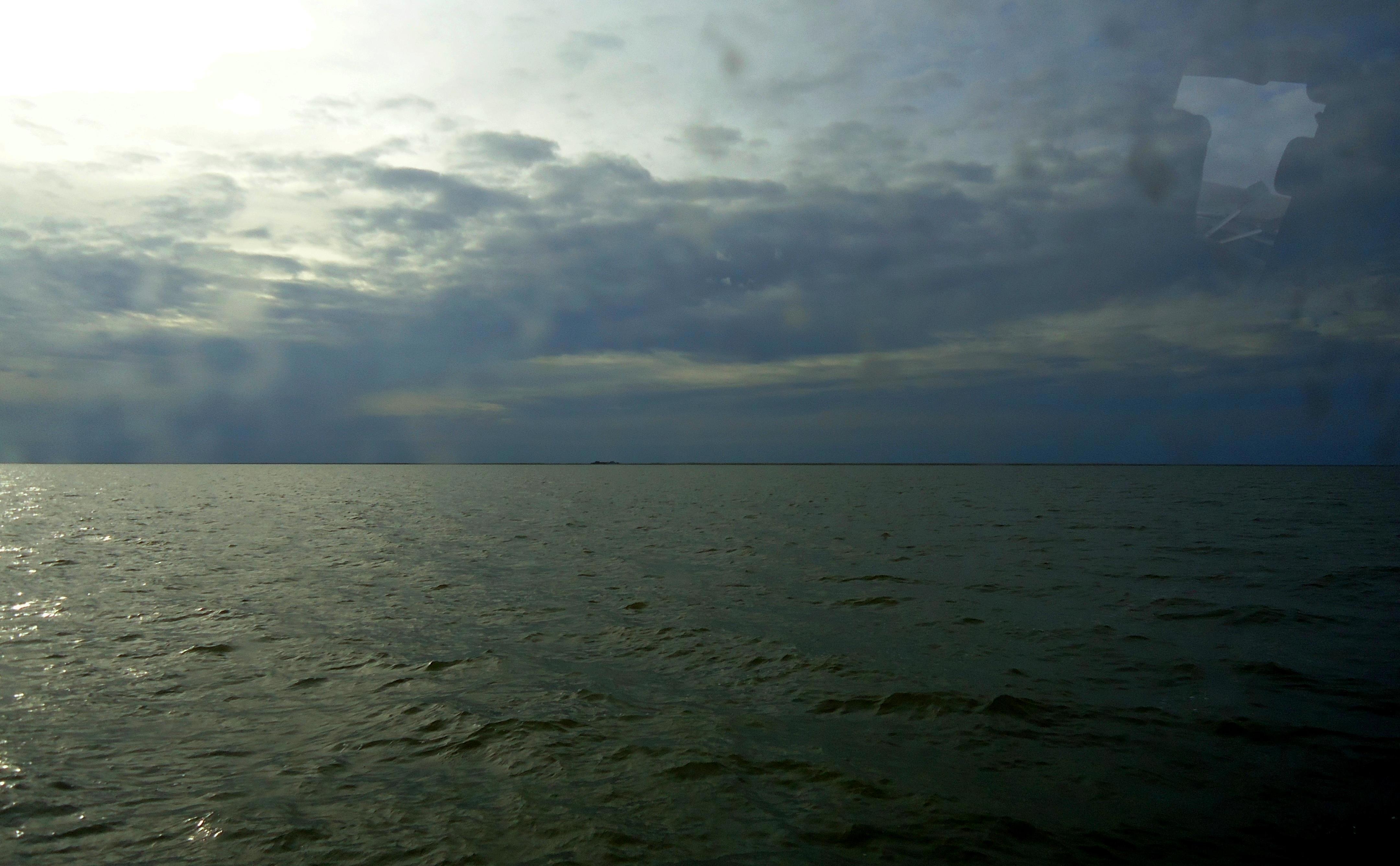 Начну с фотографии (их много будет). Итак, море, небо и тоненькая линия берега далеко впереди: