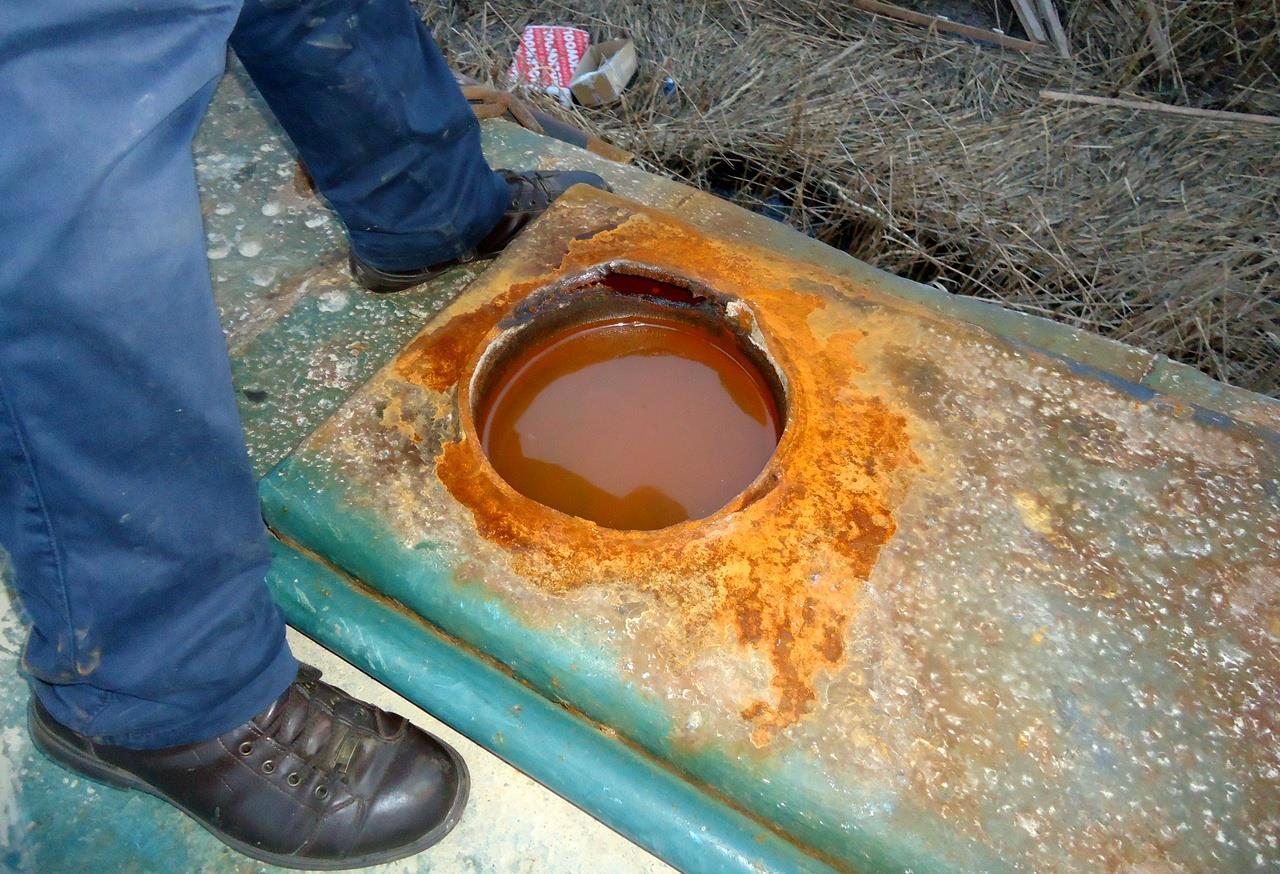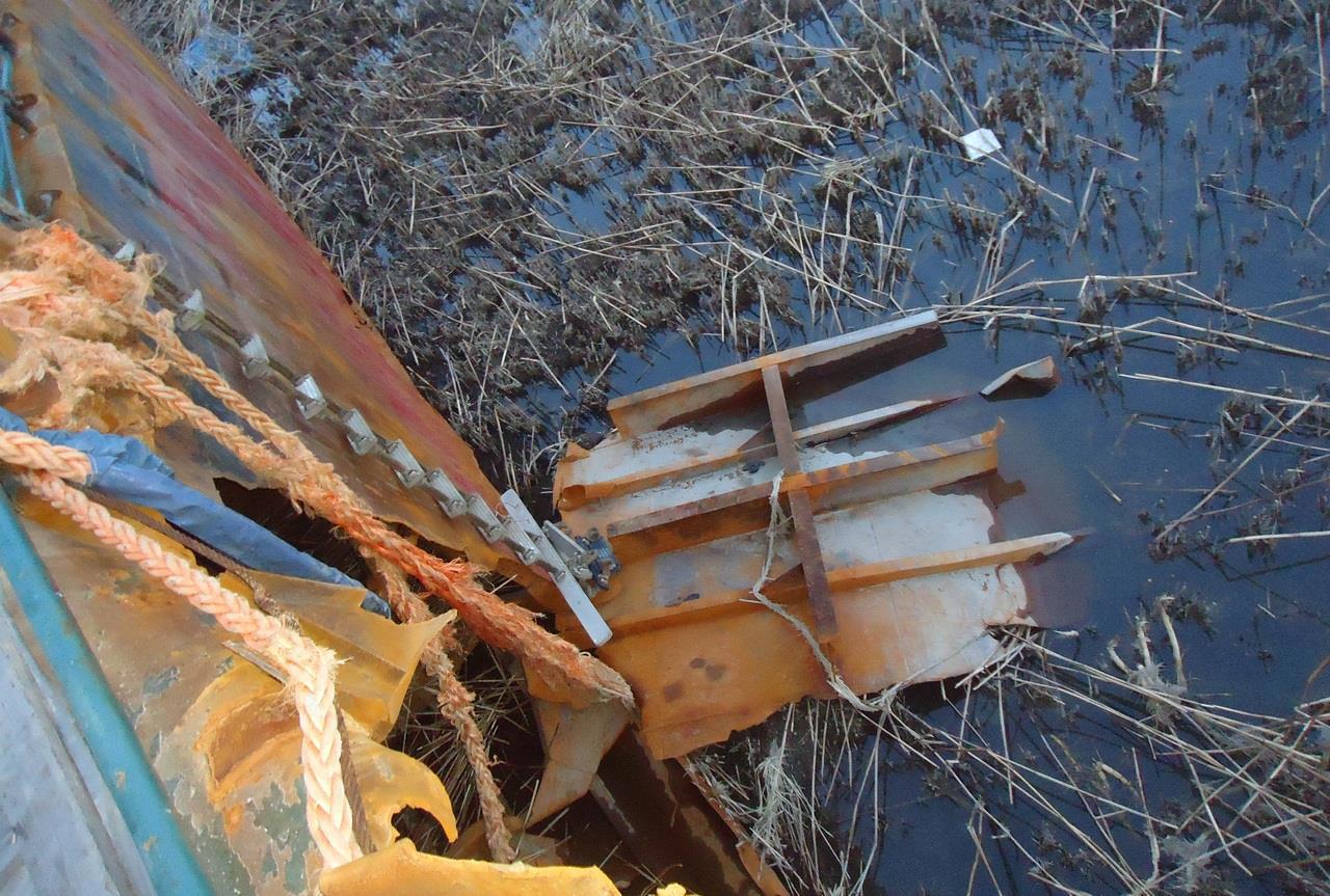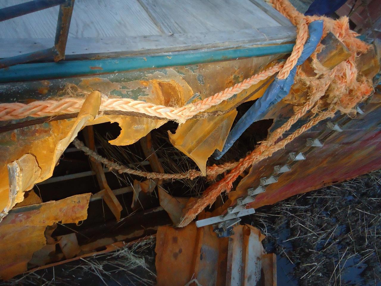 Вот так выглядит дыра в борту с «земли». Внутри виден второй, внутренний борт: