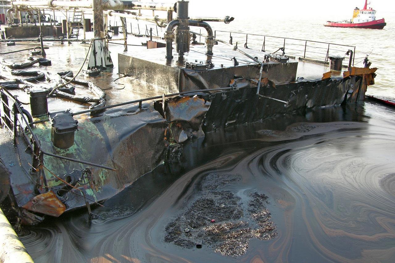 Другой «например». Видели когда-нибудь танкер, разорванный стихией пополам? Смотрите: