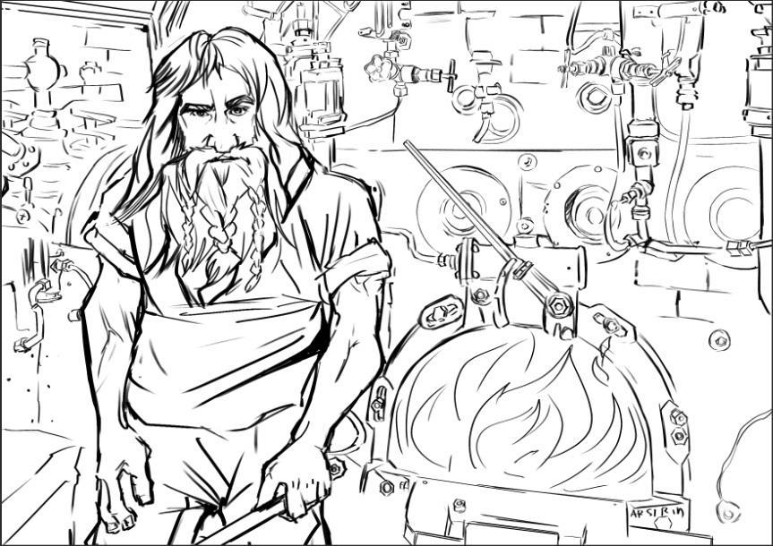 Автор: Андрей Уланов"Под обыденной кирпично-черепичной скорлупой притаился до поры идол гномьего технофетишистского культа. Размерами и количеством всевозможных шатунов, цилиндров, шкивов и прочих шестеренок этот монстр заставил бы позеленеть от зависти любой человеческий паровоз. Как раз в тот миг, когда мы перешагнули через порог, чудовище жадно проглотило топочной пастью очередную порцию угля, шумно рыгнуло горячим паром и злобно уставилось парой дюжин циферблатов на следующих потенциальных жертв.